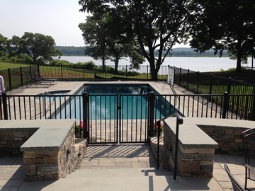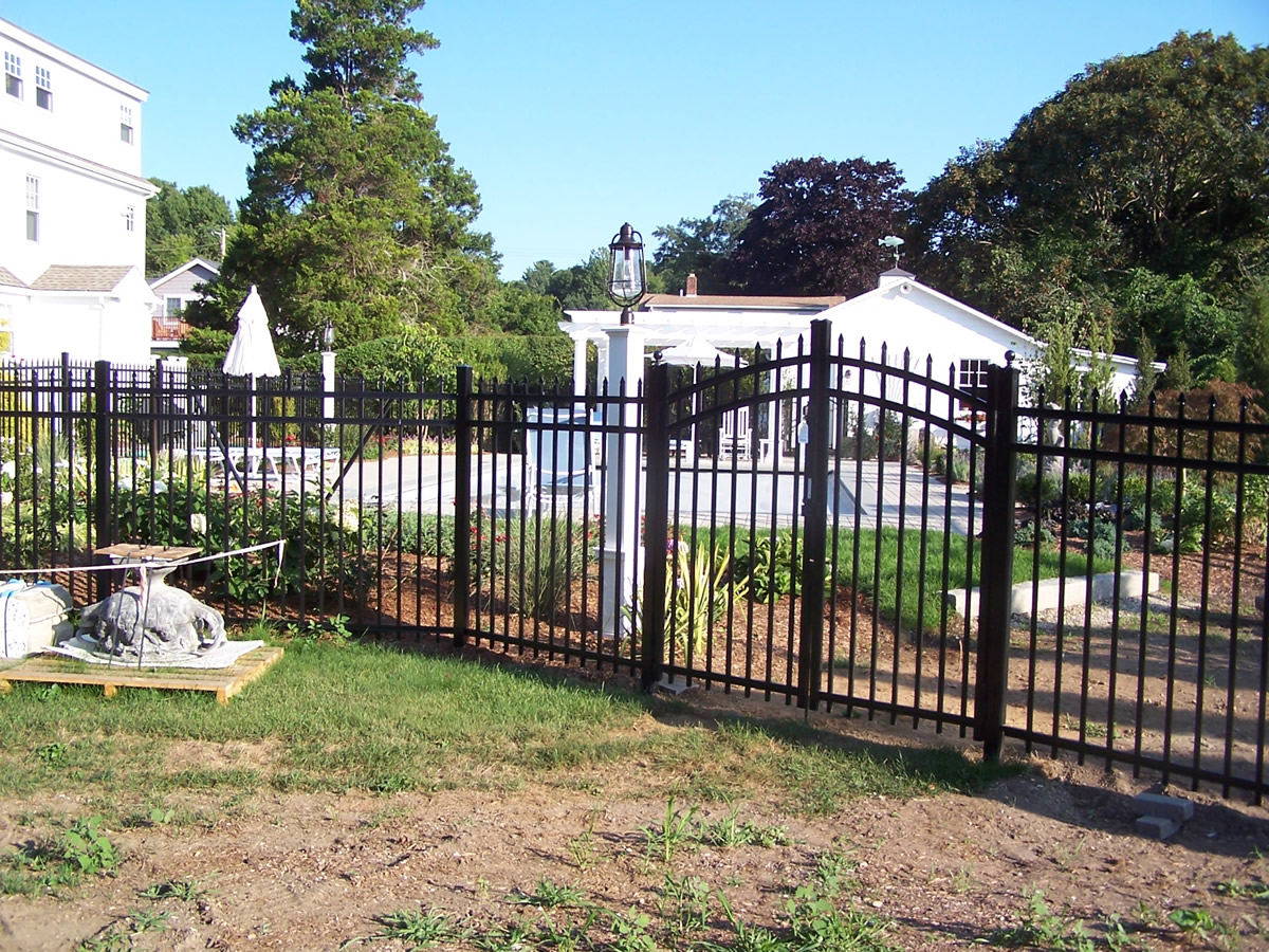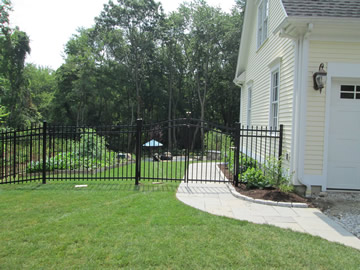 Aluminum spaced picket fences combine the appeal of an authentic wrought iron fence with the durability and maintenance free properties of aluminum. At Arrow Fence we sell and install the comprehensive line of ornamental aluminum fence manufactured by Active Yards. Ornamental aluminum is a great choice for pool enclosures and pet containment. An ornamental aluminum fence can be combined with a black vinyl coated chain link fence to create an aesthetically pleasing and cost-effective enclosure. In addition to standard gates made to match each style of fence, Active Yards offers their arched top estate gates to add elegance and flair to any entrance.
