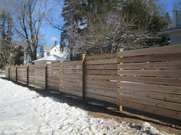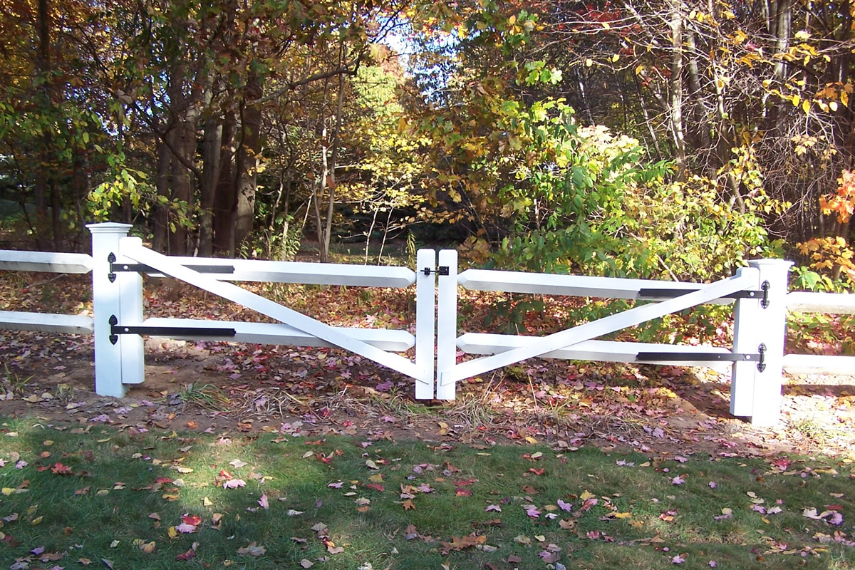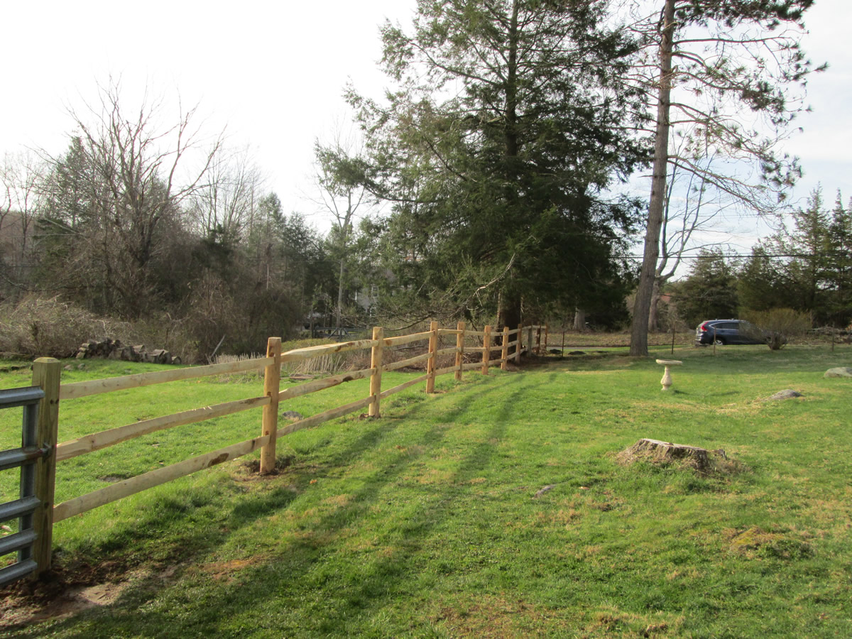 Rail fence installation is available in a variety of materials, heights, and styles. A rail fence can be used do define property lines or simply as a landscaping accent. Adding a wire mesh to a rail fence makes it suitable to enclose pets or with the right mesh even a pool. For a rustic look the locust split rail is available in 2-rail and 3-rail. The round doweled cedar post and rail offers a more finished look and comes in 2-rail and 3-rail as well. We also offer a cedar estate rail using square cedar posts and square cedar rails turned on the diagonal. The square cedar posts can be topped with a post cap to give this style of fence a unique finish. We also install board rail fences made with white or red cedar.